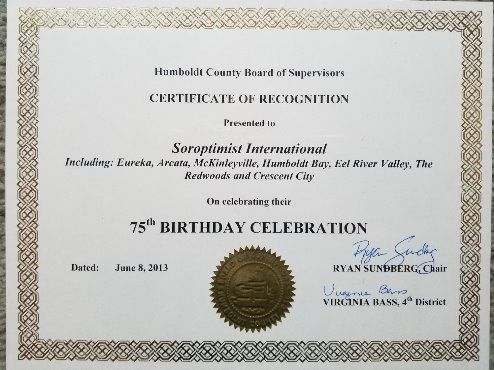 addition to giving those scholarships to local women and girls. “In thanks and appreciation to our community, Soroptimist International of Eureka is hosting a birthday celebration to honor those that have supported and funded the programs that have allowed us to make a difference in the lives of women and girls in our community, said Soroptimist International of Eureka President Crystal Hull