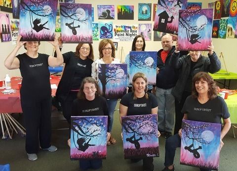 Club members showing off their artistic talents at Paint Night.